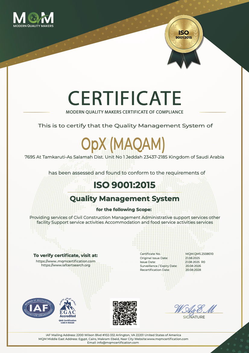 شركة أو بي إكس OpX مالكة العلامة التجارية مقام – الشركة الشهيرة في مجال المقاولات العامة والتشغيل والصيانة.